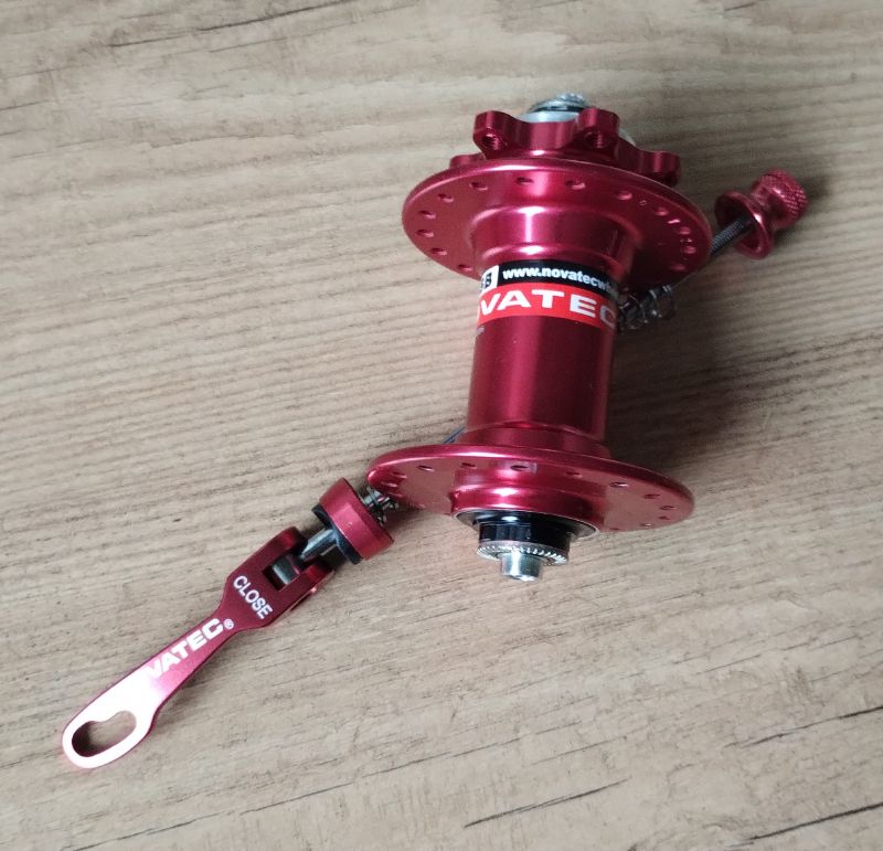 Nabe, Novatec, D042SB, rot, 100mm, 6-Loch Disc, Achse